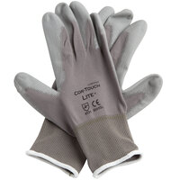 Protect your hands with these Cor-Touch white nylon abrasion resistant gloves with gray flat nitrile palm coating. The 13 gauge fabric offers cut resistance with EN 388 CE protection of 4121 against abrasions, blades, tears, and punctures. This ensures worry-free prep work for your employees as they can be sure the glove will remain durable, comfortable, and fully capable of guarding against accidental scrapes, even in high volume, fast-paced settings. Perfect for warehouses, construction sites, and handy-man jobs alike, these gloves are sure to boost both safety and productivity. These gloves comply with food handling requirements, making them ideal for use in kitchens or food trucks.