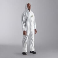 These coveralls boast durable, serged seams to prevent fraying while still allowing for some flexibility. They feature a tight-fitting, elastic hood and durable boots for extra protection. The elastic wrists and ankles allow for a snug fit, while the front zipper helps provide a secure fit and closure. Use them wherever a high level of protection from contaminants is desired, such as with asbestos abatement, spray painting, or mold remediation. Safe for food contact, these coveralls are also perfect for large food processing facilities. They are ANSI/ISEA 101 rated for compliant sizing and ASTM 1670 rated for resistance to blood penetration.