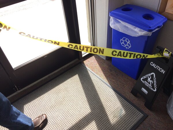 Nice yellow caution tape had a fantastic price and it works good when your floor's wet you run some caution tape or when you need people to not go there you run some caution tape
