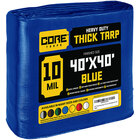 Keep important items protected with this Core Tarps 40' x 40' green / black heavy-duty weatherproof 10 mil poly tarp with reinforced edges. This multi-purpose tarp serves as a protective cover for items such as building materials, vehicles, roofs, and outdoor furniture. It boasts metal grommets every 24" and it has reinforced edges, making it quick and easy to tie down. Thanks to the ultra-strong grommets, your tarp will remain securely in place even when it is windy.