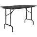 Discounted shipping withIf you need a table that eases the process of setup and teardown, look no further than this Correll 24" x 48" black granite thermal-fused laminate top folding table! This table's convenient fold-up design allows you to simply flip the tabletop to the side for incredible space-saving efficiency when both transporting and storing. Then, when ready for use, the legs easily lock back into place with an automatic lock-open mechanism. The black frame and t-mold is a wonderful complement to the attractive black granite top, providing you with an aesthetic that effortlessly blends with any setting.