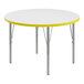 Correll 42" Round White 19"-29" Adjustable Height High-Pressure Dry Erase Board Top Activity Table with Silver Legs and Yellow T-Mold