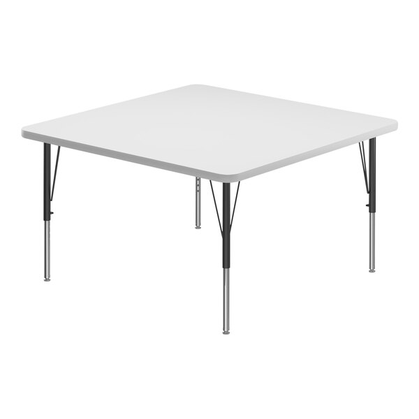 Correll 48" Square White 19"-29" Adjustable Height High-Pressure Dry Erase Board Top Activity Table with Black Legs and Gray T-Mold