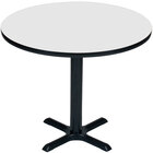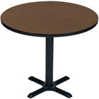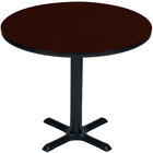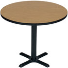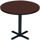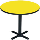 Add an attractive, durable table to your space with this Correll BXT42R-35 42" round red finish / black table height high pressure cafe / breakroom table. This table has a durable high-pressure laminate top with a sturdy 1 1/4" thick high density core so that it can stand up to frequent use by patrons or employees. The top has a backer sheet to resist warping over time while T-mold edging protects the table's edge from chipping or suffering other damage during use. It is resistant to wear, scratches, stains, and food, which makes this table a great choice for anything from breakrooms to cafes and delis.