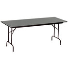 This table features a 3/4" thick high-density particle board core and backer sheet with a high-pressure laminate top, offering a robust, smooth surface for heavy-duty use in schools, universities, offices, and foodservice applications. It rests upon 18-gauge steel pedestal legs for sturdy, reliable stability and is supported by mar-proof plastic foot caps that are great for protecting your floors from scratches and scuff marks. Plus, a 1 5/8", one-piece steel apron reinforces the table's unbeatable strength. Use this folding table for your next banquet, conference, or social event!