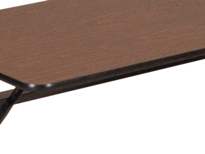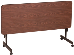 If your business is looking for a new table, Correll's EconoLine 24" x 48" walnut commercial thermally fused melamine top mobile flip-top, adjustable-height table is the perfect choice. This product works well for banquet facilities, conference rooms, cafeterias, and any other area where storage space is at a premium. This table features 2 black 1" x 2" x 20" 16 gauge steel pedestals and a matching H-frame give this table excellent stability.