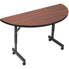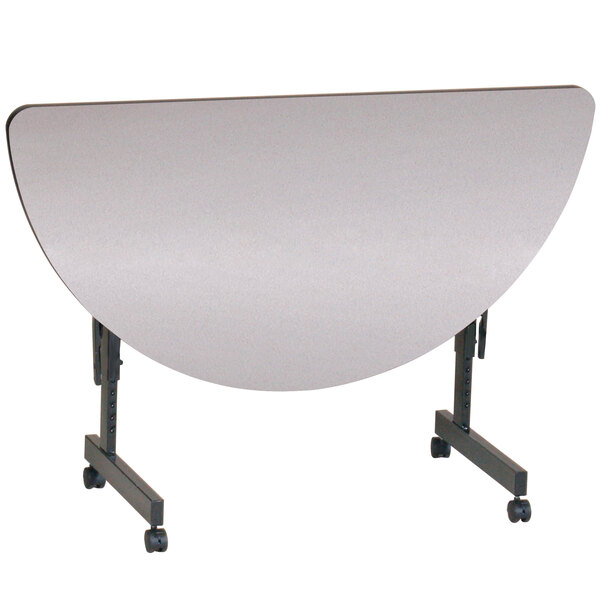 Correll EconoLine 24" x 48" Gray Granite Thermally Fused Melamine Adjustable-Height Mobile Half-Round Flip-Top Table