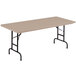This Correll RA3072S-24 30" x 72" adjustable height folding table provides you with a durable, high-quality surface to complete art projects, crafts, science experiments, and a variety of other tasks. This table's blow-molded top is lightweight, scratch resistant, and impact resistant for superior durability. The mocha color goes all the way through the top instead of just on the surface, so you don't have to worry about it wearing or scraping off. The tabletop also resists stains and damage from food, crayons, markers, paints, chemicals, and other materials, making the table a great choice for science or art classes, and even day care centers. The rounded corners provide additional safety, ensuring that there are no sharp points for students or staff to bump into.