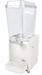 This Crathco D15-4 single bowl high impact plastic refrigerated beverage dispenser is perfect for boosting impulse sales at your snack bar, convenience store, or fast food restaurant. While its ample 5 gallon capacity helps to minimize refills, its crystal-clear bowl expertly showcases your colorful signature fruit juice, iced tea, or iced coffee for an eye-catching appearance.