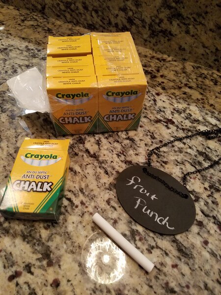 We purchased the chalk for the guests at a wedding to be able to personalize their wedding favor, which is a mason jar mug also purchased at Webrestaurant. The chalk arrived in perfect condition.