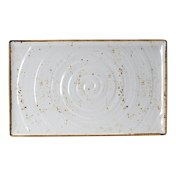 The Craft melamine dinnerware line features an elegant white color accented with flecks of earthy brown, making for a memorable presentation that is sure to impress your guests. Thanks to its unique and durable design, this platter is great for serving both hot and cold appetizers and shared sides. Whether you're operating a casual dining establishment, running a buffet service, or hosting an outdoor event, this Craft melamine platter guarantees reliable performance alongside a refined, natural appearance.