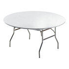 Create a modern look for your next picnic or party with this Creative Converting 37200 Stay Put 60" round white plastic table cover. Featuring elasticized edges and adhesive strip backing, this table cover is specifically designed to prevent movement caused by wind or people getting up from the table, so plates, cups, and other tabletop items remain safely upright and secure. It comfortably fits 5' round tables with a 2 1/2" edge.