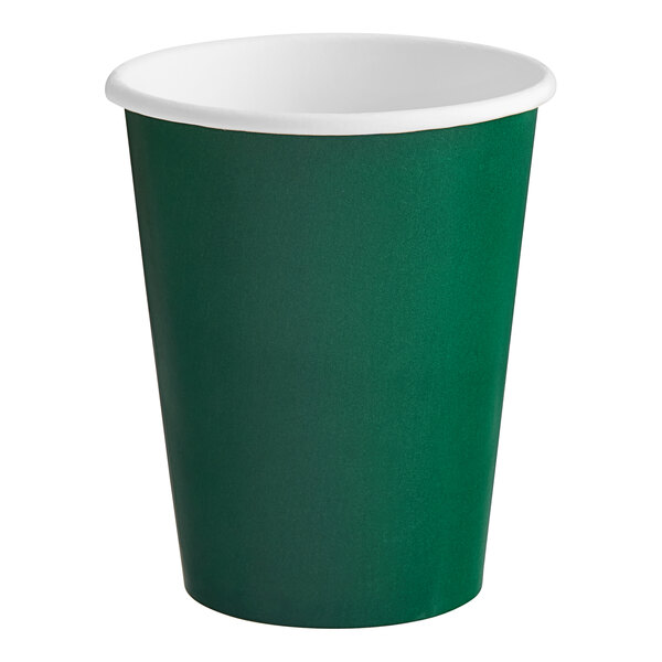 With Creative Converting’s 563124B 9 oz. poly paper hot and cold cup, you can easily serve your guests at variety of beverages at your concession stand, sporting event, or food truck. This product comes in a bold hunter green color that makes it great for St. Patty’s Day events or Christmas parties. This cup also features a contrasting white interior for an attractive two-tone appearance that is fitting in a variety of settings. Best of all, this product also has a leak-proof inner lining that keeps liquids contained, while the outer coating protects the cup from weakening.