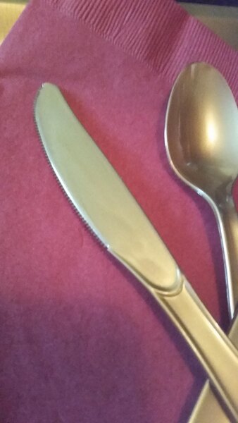 Very nice plastic knife . we used them at a baby shower so we were not cutting steak. but they I did like weight and size and would buy again.