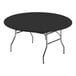 Create a modern look for your next picnic or party with this Creative Converting 703000 Stay Put 60" round black plastic table cover. Featuring elasticized edges and adhesive strip backing, this table cover is specifically designed to prevent movement caused by wind or people getting up from the table, so plates, cups, and other tabletop items remain safely upright and secure. It comfortably fits 5' round tables with a 2 1/2" edge.