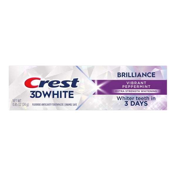 Crest 0.85 oz. 3D White Brilliance Vibrant Peppermint Extra-Strength Whitening Toothpaste - 36/Case