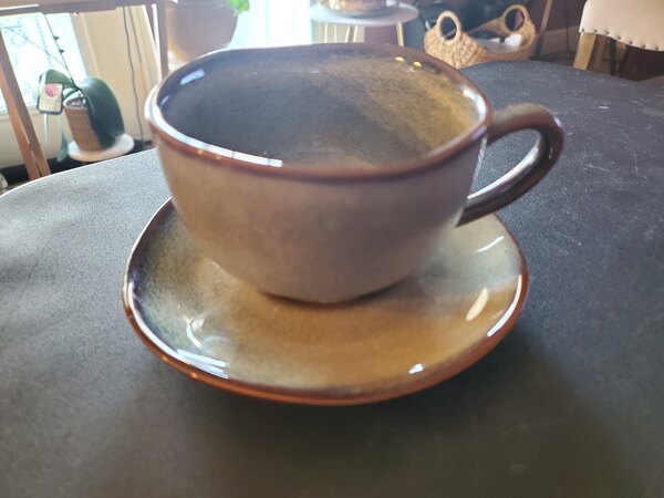 Love the color and size...solidly built and matches the platter and saucer perfectly.