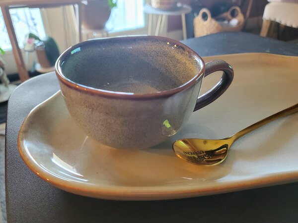 Each piece is uniquely its own, giving your tabletop a distinctive and artistic touch. Perfect for upscale casual eateries looking to add a touch of sophistication to their dining experience, this cup is a versatile and stylish choice for serving your hot beverages.