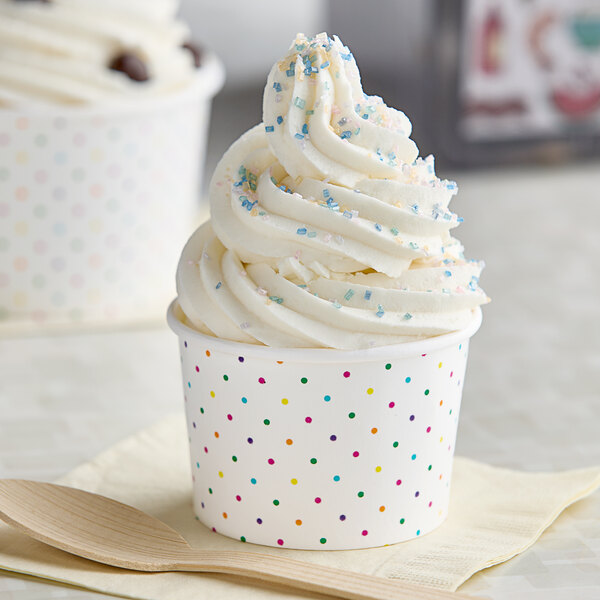 Serve a wide variety of cold and frozen treats with this Choice 4 oz. polka dot paper frozen yogurt cup!