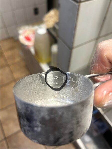 I’ve Never seen a measuring cup that flush with the top isn’t the exact amount it’s supposed to be. The correct amount on each cup is below full. The picture i posted is the 1/3 cup