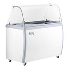 A sliding cover protects your product while helping to retain cold air around the product for a safe holding environment. Because it slides open and closed, it's fast and easy to use, too, which is perfect for those busy rush hours or constant streams of customers in the summer months! The cover also comes equipped with a lid lock to ensure that your product remains protected and temperature controlled. This dipping cabinet features a white, curved front design with a painted steel construction. Plus, it has LED lighting to help light and show off your products!
