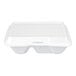This Dart 205HT2 white foam, two compartment container with a hinged lid is ideal for improving your business's take out service or for conveniently packing leftovers from your sit-down establishment! The clamshell container is insulated to maintain food's proper serving temperature, ensuring customer satisfaction as well as food safety, and the foam material makes it a cost-efficient option over other materials. Its two separated compartments can help you easily organize and store a main dish with one side! It features a perforated hinge, which allows you to easily remove the lid for a less cluttered dining experience. The removed lid can then also double as an extra plate for sharing take out meals. Thanks to its secure closure tabs, the two compartment hinged lid take out container protects against accidental openings and spills. Purchase with confidence knowing these containers are all CFC free, meaning that they were not produced with Chlorofluorocarbon chemicals that could harm the ozone layer.