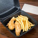 Dart 85HTB1R 8" x 8" x 3" Black Foam Square Take-Out Container with Perforated Hinged Lid – 200/Case Why it’s convenient: This sleek black take-out container adds a modern, professional look to your food presentation—perfect for restaurants, food trucks, or catering. The sturdy foam construction keeps food hot and secure, while the perforated hinged lid allows for easy separation if needed. Its user-friendly design makes packing and handling simple for both staff and customers. The black color not only looks great but also helps create a premium, clean vibe for any type of meal.