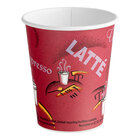 This cup has a stylish cafe-inspired design that's decorated with fun coffee lingo as well as coffee cups. This fun design is sure to complement the color scheme and atmosphere of your business.