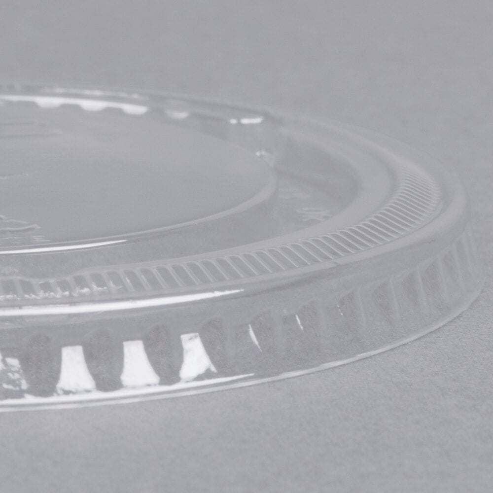 With this clear flat lid, you can reduce drips and spills, and allow customers to easily slide a drinking straw into its center slot for convenient drinking. Whether you're stocking your disposable drinkware supply in your cafe, kiosk, deli, or other venue, this Solo plastic lid is the economical choice that gives you functionality, durability, quality, and satisfaction!