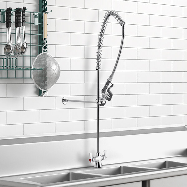 Whether you're running a busy restaurant, cafeteria, or cafe, this pre-rinse faucet is designed to meet the demands of a high-volume kitchen while maintaining optimal performance and hygiene standards. Upgrade to this Assure Parts pre-rinse faucet for a reliable and efficient solution for your dishwashing needs. This pre-rinse unit comes with an 18" riser.