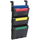 Keep documents organized and out of the way with this Deflecto 12 5/8" x 3 7/8" x 25" black 3-pocket partition system! This convenient unit comes with 3 pockets to hold letter-sized paper, files, and folders and keep them organized while saving valuable desk space. It mounts directly onto the wall with the included hardware, or it can hang from the top of a partition wall using the included partition brackets.