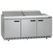 Delfield 4472NP-24M 72" 3 Door Mega Top Front Breathing Refrigerated Sandwich Prep Table with 3" Casters