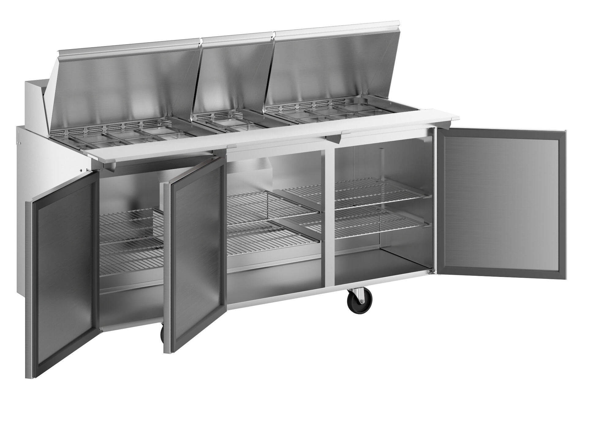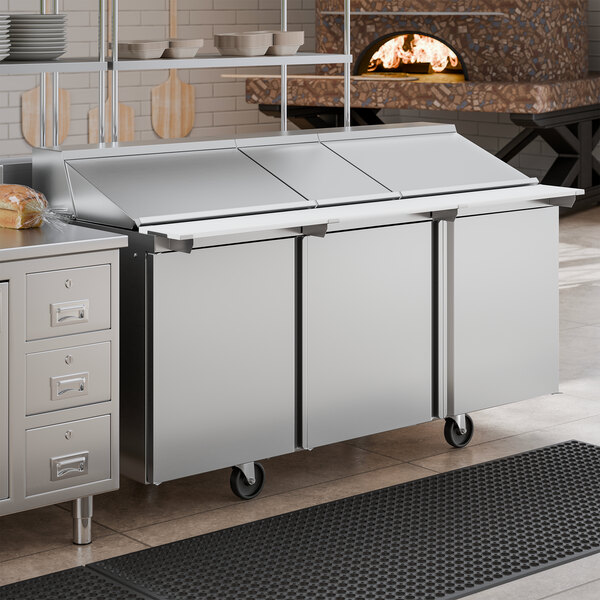 - Item #: 3054472np30mDelfield 4472NP-30M 72" 3 Door Mega Top Front Breathing Refrigerated Sandwich Prep Table with 3" Casters