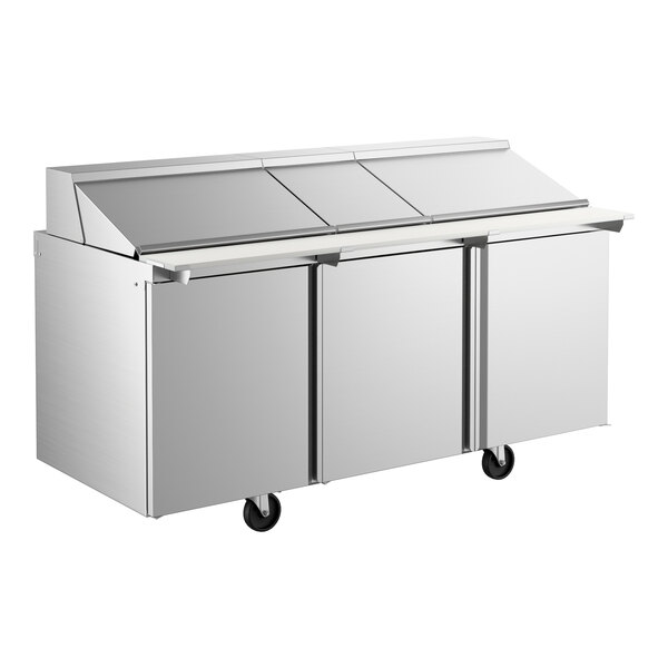 - Item #: 178ssptcm7118Avantco SS-PT-71M-18-C 70" 3 Door Mega Top Stainless Steel Refrigerated Sandwich Prep Table with Workstation and Extra Deep Cutting Board