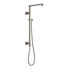 This shower column features a consolidated installation footprint, and it retrofits into your existing shower arm without needing to modify in-wall plumbing. Its sliding hand shower mount allows you to adjust the height and angle of the hand shower. Plus, it includes a 60"-82" long stretchable metal hose for ultimate flexibility. This unit comes with a 15" overhead shower arm, and it has an integrated hose supply to eliminate the need for an additional supply elbow. It should not be used as a grab bar.