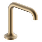 - Modern, upscale design with a high arc spout and an attractive champagne bronze finish