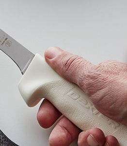 This knife's Sani-Safe handle is both textured and slip-resistant. It is able to withstand temperatures up to 250 degrees Fahrenheit. It also boasts a comfortable, ergonomic design that is easy to hold with a protective finger guard to reduce accidental injuries.