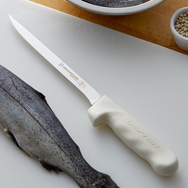 Crafted with care to handle the needs of your kitchen, this Dexter-Russell Sani-Safe flexible fillet knife is ideal for preparing your fresh fish. With its highly ergonomic Sani-Safe handle, individually ground blade, and unique edge geometry, you can rest assured that this knife will stay sharp over time, slicing fish and removing fat with precision. This versatile tool is perfect for any commercial kitchen that regularly prepares and serves seafood and meat.