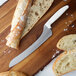 Cut through tough meats and tender breads with this Dexter-Russell 13583 9" Sani-Safe white handle scalloped offset bread and sandwich knife! This knife's scalloped edge is perfect for cutting through thick crusts without crushing the soft interior. The offset design of this knife conveniently keeps hands away from foods and off the cutting board during use. With a simple sawing action, this bread knife allows you to effortlessly cut through your fresh breads or sandwiches without having to worry about flattening or crushing the product. Created for durability, each stain-free, high-carbon DexSteel stainless steel Dexter-Russell knife is individually ground and honed for a razor sharp cutting edge. Plus, the 9" blade length lets you cut loaves of bread or even larger fruits with ease to improve efficiency!