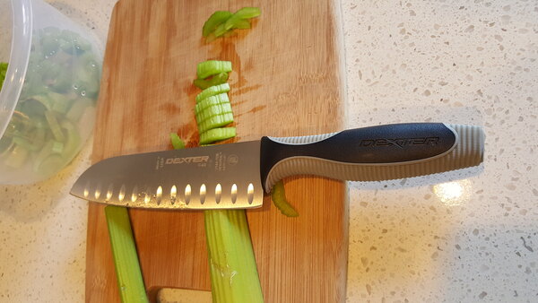 The Dexter Russel Duo Edge Santoku Style Chef's Knife is a great multi-purpose tool fitting for an aspiring cook, or a professional chef, highly recommended!