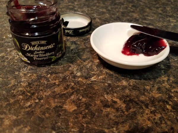 The Dickinson 1 oz black berry preserves is such a cute nice package. Great and fresh. Perfect for pack lunches. Will be buying more of these for sure. Such a great flavor