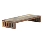 Take your dining presentations to the next level with this Cal-Mil Sydney 18" x 7" x 3" oak nesting display stand. This display stand boasts an elegant, handcrafted oak construction. It also features slatted sides, providing a modern look. The classic design allows you to easily elevate and display your dishes, helping to maximize space on your tabletop.
