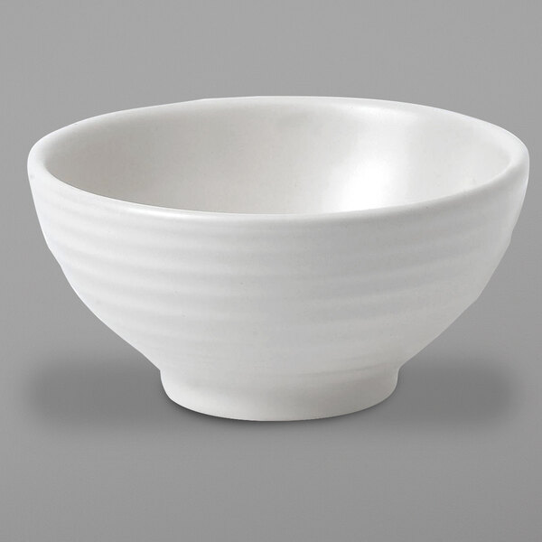 Create dynamic dining presentations and boost your cozy charm with this Dudson EP105 Evo 7 oz. matte pearl round stoneware rice bowl by Arc Cardinal. Perfectly proportioned to house a variety of culinary delights, this versatile bowl is great for doling out gourmet servings of rice or appetizer soups and salads. No matter your signature cuisine, this product is sure to make your menu items pop, offering a soft pearl coloring that will cause your delicious masterpieces to stand out from all the rest! Plus, its beautiful linear embossment adds texture and intrigue to your tabletop settings.
