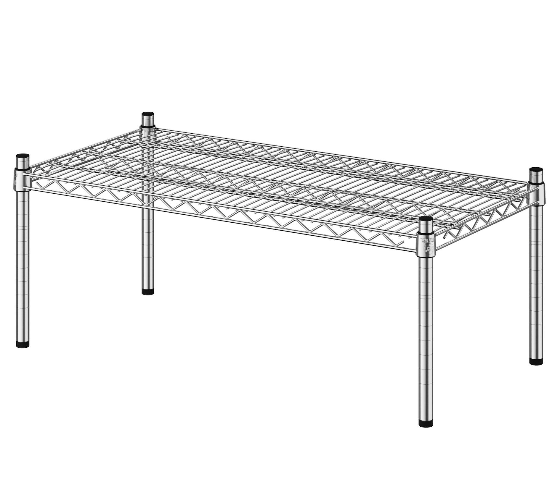 This shelf features a wire construction, which allows for proper air flow around the stored supplies, products, or ingredients, and it has a wire mat that can be removed for cleaning. The shelf accommodates up to 700 lb. of evenly distributed weight.
