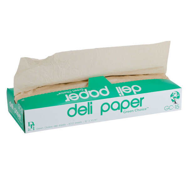 Try this EcoChoice 15" x 10 3/4" Interfolded Natural Kraft Deli Wrap Wax Paper - 6000/Case instead! With similar benefits and features, this item is an ideal alternative to your current item.