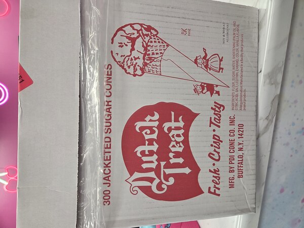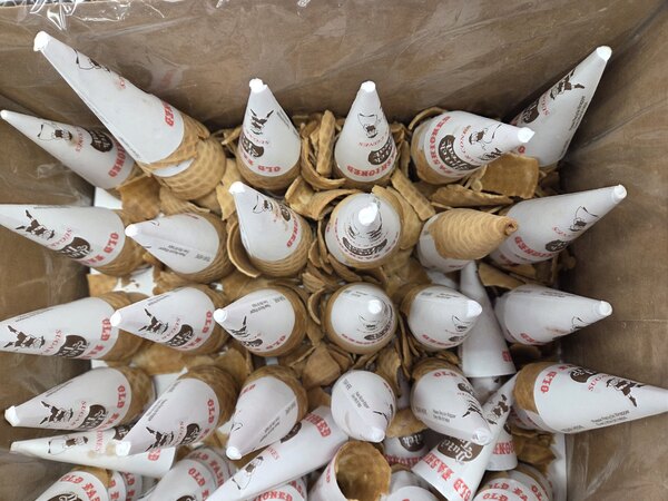 I really love the taste of these cones, and I have confirmed with the manufacturer that they are vegan (I use them at a vegan ice cream shop). But, it is really frustrating that so many in the case are broken when they arrive and many, many more crack as you are trying to place a scoop onto them. I want to continue ordering because they are really good, but I am starting to feel like it's not worth it for the ratio of useable cones, and also the time wasted needing to start over with a customers scoop when the cone cracks in the process.