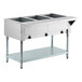 The body is made of polished 430 series stainless steel for long-lasting durability and features galvanized legs and bullet feet to remain sturdy at all times. Plus, it boasts fully insulated wells to help minimize heat loss during use.
