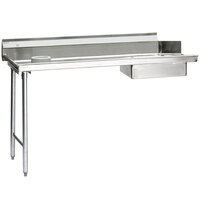 Provide plenty of space to rinse china and glassware, remove scraps, and load warewashing racks by adding this Eagle Group SDTR-48-16/4 48" right side stainless steel soil dish table to your warewashing system. This table is made of 16 gauge type 430 stainless steel for long-lasting durability and has a built-in 20" x 20" x 5" pre-rinse sink punched for a standard basket drain. Plus, this unit is supplied with a hole for the installation of a pre-rinse faucet (sold separately). It has an 8" backsplash to protect your walls from water damage and impact from warewashing racks and a 3" upturn on the sides to help contain excess water that drips from your dishes. The smooth 1 1/2" rounded edge helps to make this table safer for employee use since it eliminates sharp corners and edges.