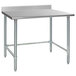 This Eagle Group T2460GTB-BS 24" x 60" work table boasts a durable 16 gauge, type 430 stainless steel top that's great for use in dry conditions as a food prep area, or for storing tools and ingredients! For added convenience the top is sound-deadened to reduce noise in your work area, while its patented uni-lok recessed gusset design reduces lateral movement for superior stability during use. (4) galvanized 1 5/8" legs with plastic bullet feet provide support for the whole table. Its open base design makes it easy to roll large ingredient bins underneath. Plus, this work table has a 4 1/2" rear upturn and 1 1/2" rolled front edge.