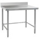 This Eagle Group T2460STEM-BS 24" x 60" work table boasts a durable 14 gauge, type 304 stainless steel top that's great for use in both dry and damp conditions as a prep and processing area, or for storing equipment! For added convenience the top is sound-deadened to reduce noise in your work area, while its patented uni-lok recessed gusset design reduces lateral movement for superior stability during use. (4) heavy gauge stainless steel 1 5/8" legs with stainless steel bullet feet provide support for the whole table. Its open base design makes it easy to roll large ingredient bins underneath. Plus, this work table has a 4 1/2" rear upturn and 2 1/16" marine counter edges on all sides.